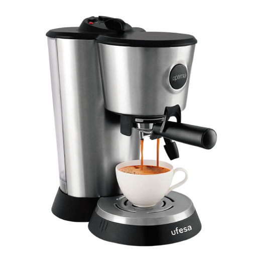 Doble opción de preparación de café: Sistema tradicional de café molido. Sistema de Monodosis. Interruptor para vaporizar. Vaporizador orientable Turbo. Porta filtro metálico con filtro para 1 o 2 tazas. Control mecánico. Cacillo dosificador de café.